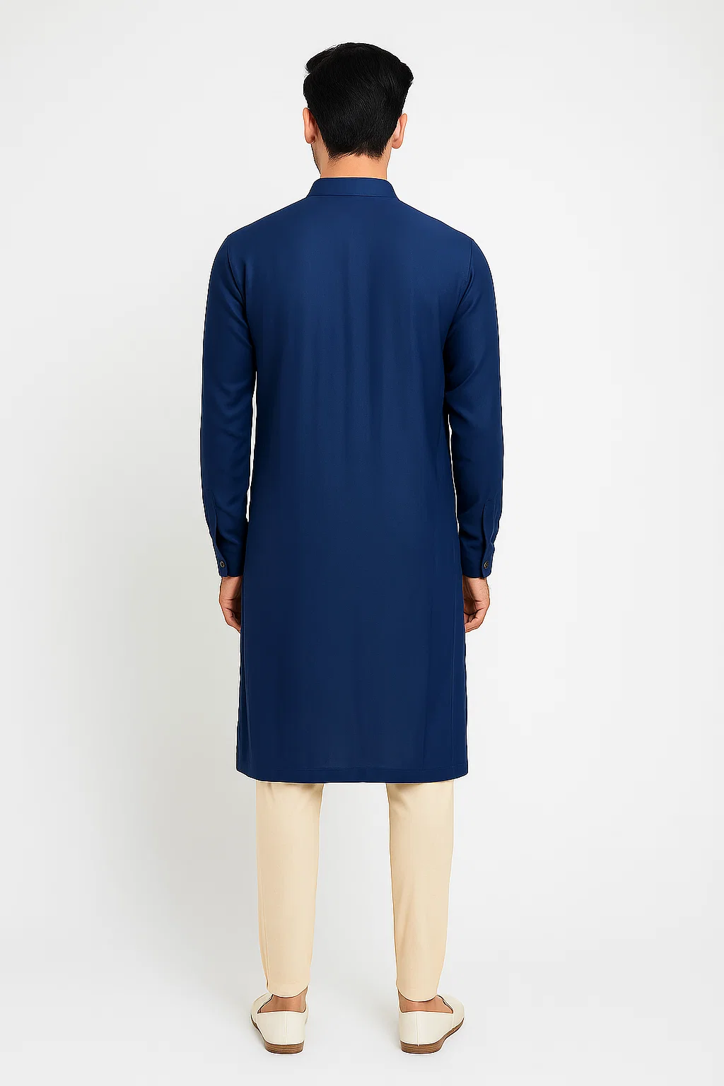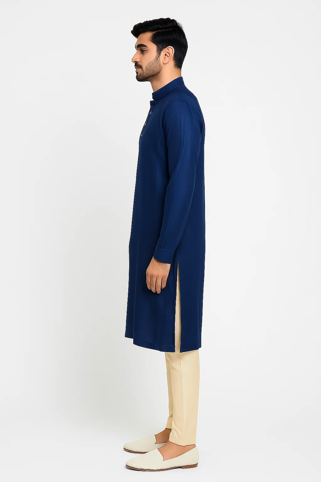 Cotton Blue Plain Kurta with Standard Collar, Full Sleeves, Long Length Comfortable & Versatile Men’s Ethnic Wear for Casual & Formal Occasions