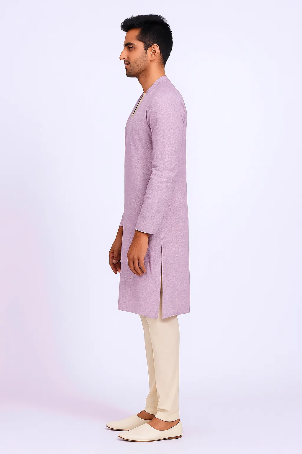 Lavender Georgette Kurta with Self Thread Work and Sequins Design, Full Sleeves, Standard Collar, Short Length Stylish and Elegant Men’s Ethnic Wear