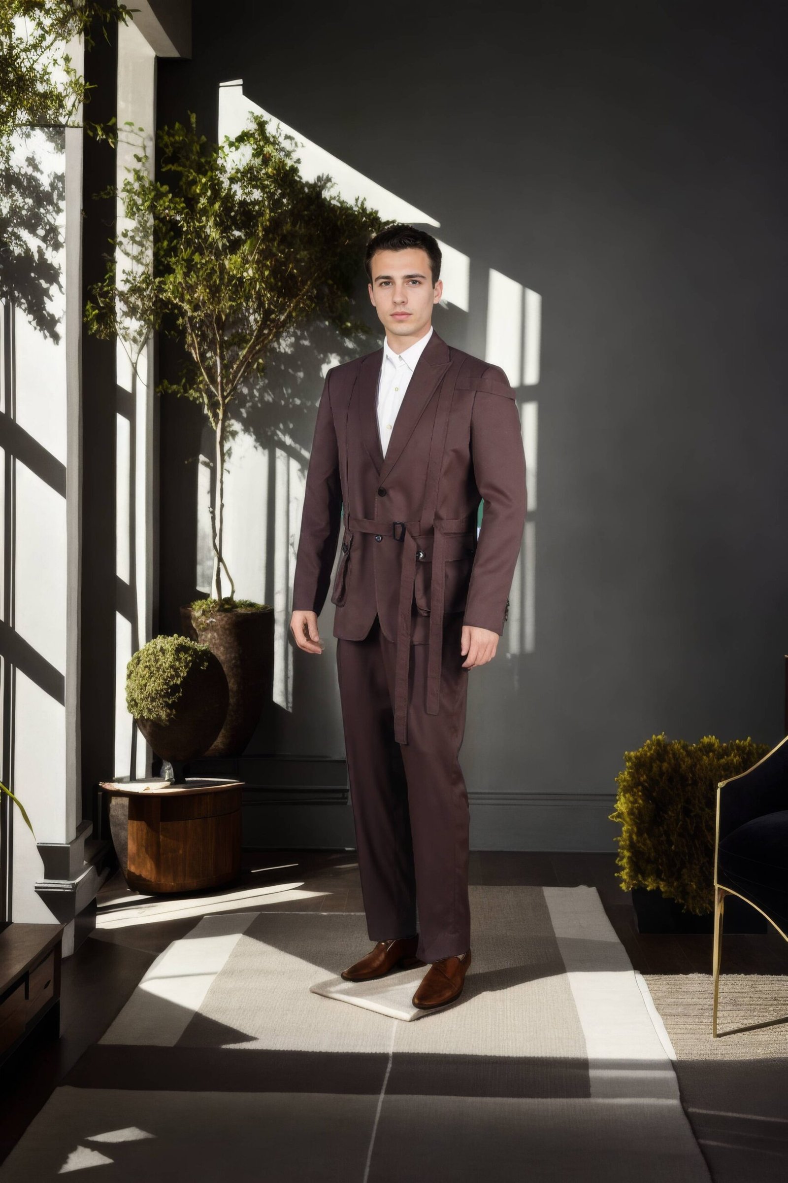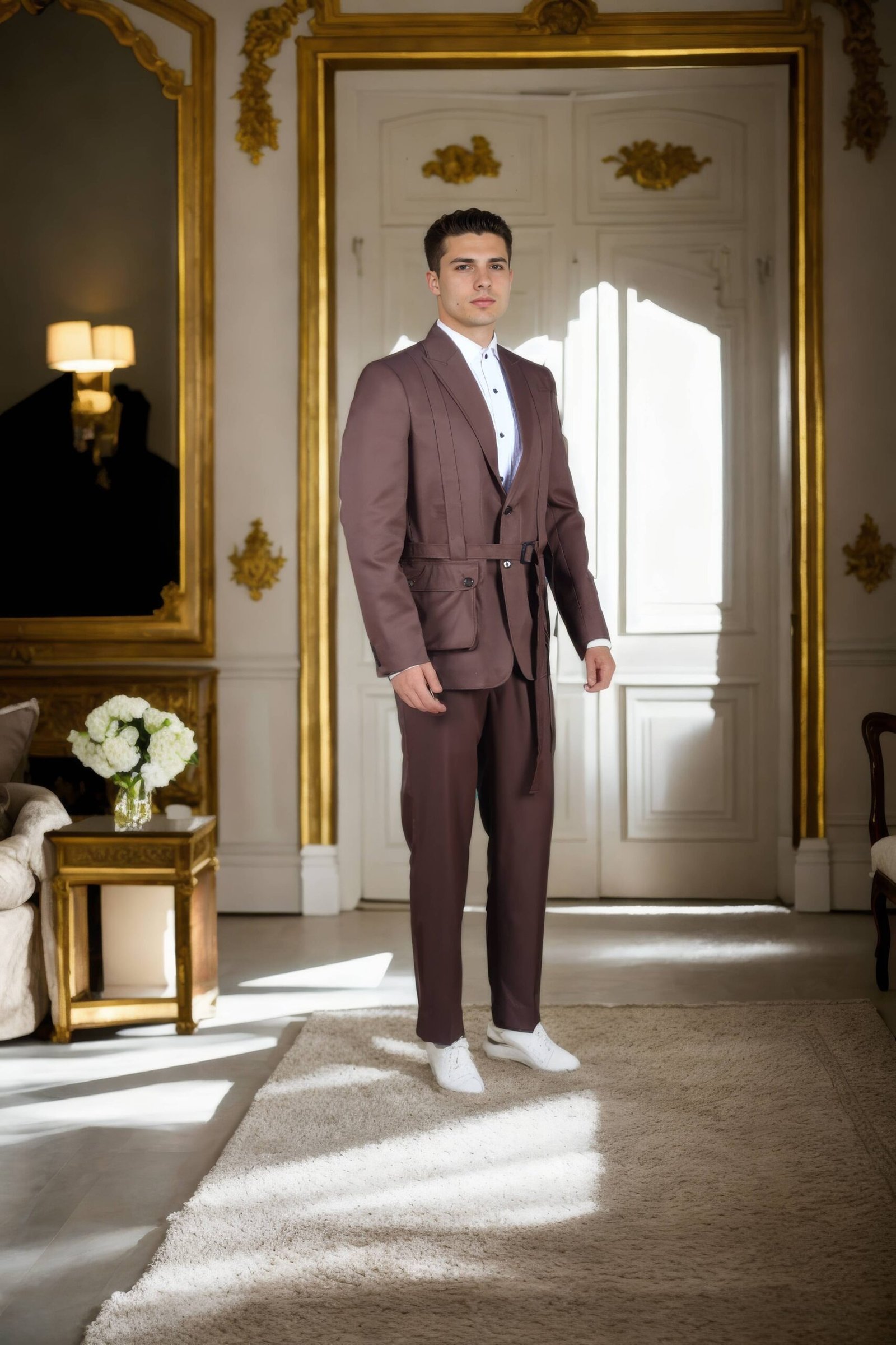 Add a touch of timeless sophistication to your wardrobe with the Brown Suiting Set. This set features a single-breasted, two-button blazer with notch lapels, offering a sharp, refined look. The stylish suspenders and unique 3D pockets add functional elegance to this set, making it a standout choice for any formal or semi-formal occasion. The full-sleeve blazer complements the tailored A-line pants, creating a clean, modern silhouette that is both fashionable and comfortable. Crafted from high-quality suiting fabric, this brown set exudes a warm, classic feel with a contemporary edge. The combination of the notch lapel blazer, suspenders, and 3D pockets ensures that you?ll stand out at weddings, gala events, or business functions. Whether you’re looking for a stylish suit for a formal event or seeking a versatile addition to your wardrobe, this suit delivers elegance and practicality. Available for purchase and rental, the Brown Suiting Set is a must-have for any fashion-conscious man who appreciates high-quality craftsmanship and modern style.